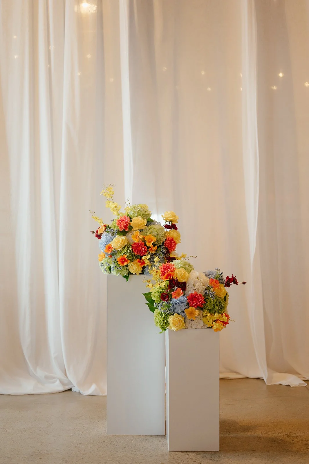I’ll help you choose the perfect combination of arrangements and pedestals to achieve a vision that complements your event and your budget.